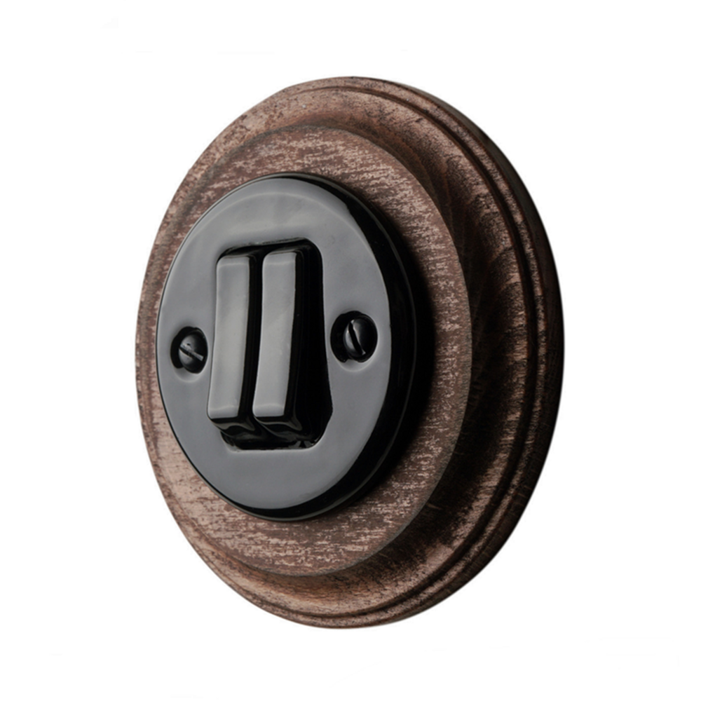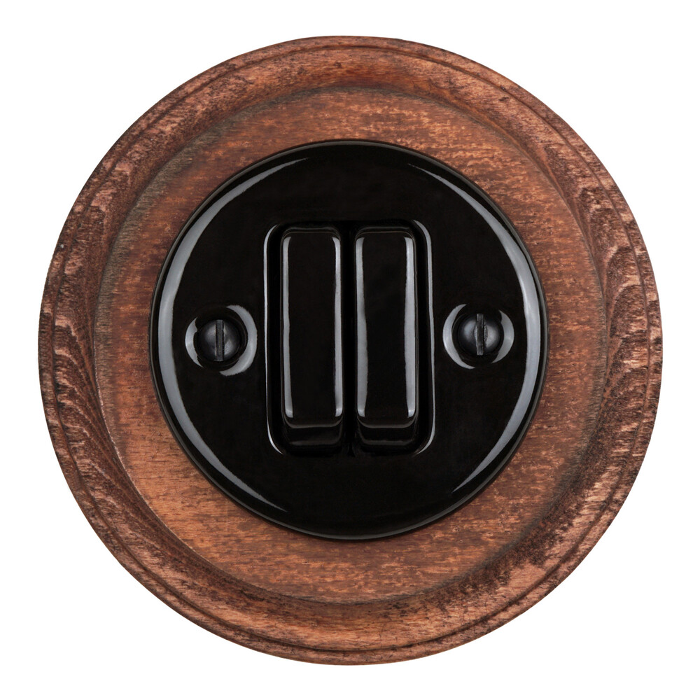 Fnd bouton poussoir, double, porcelaine noire, bornes à vis, 10A, 250V, IP20.